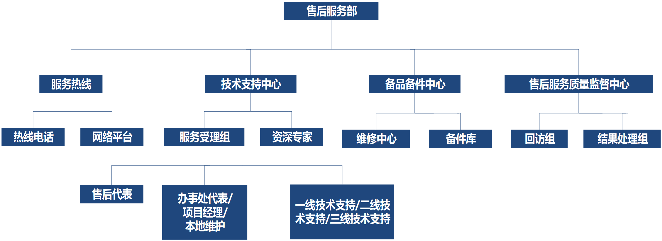 • 三级备件库保障,总部、省中心、市区三级备件库覆盖全国;