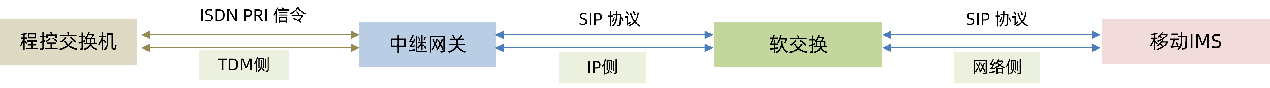 1)在移动接入机房部署1套主备软交换,软交换上行通过语音专线终端注册至运营商IMS网络;