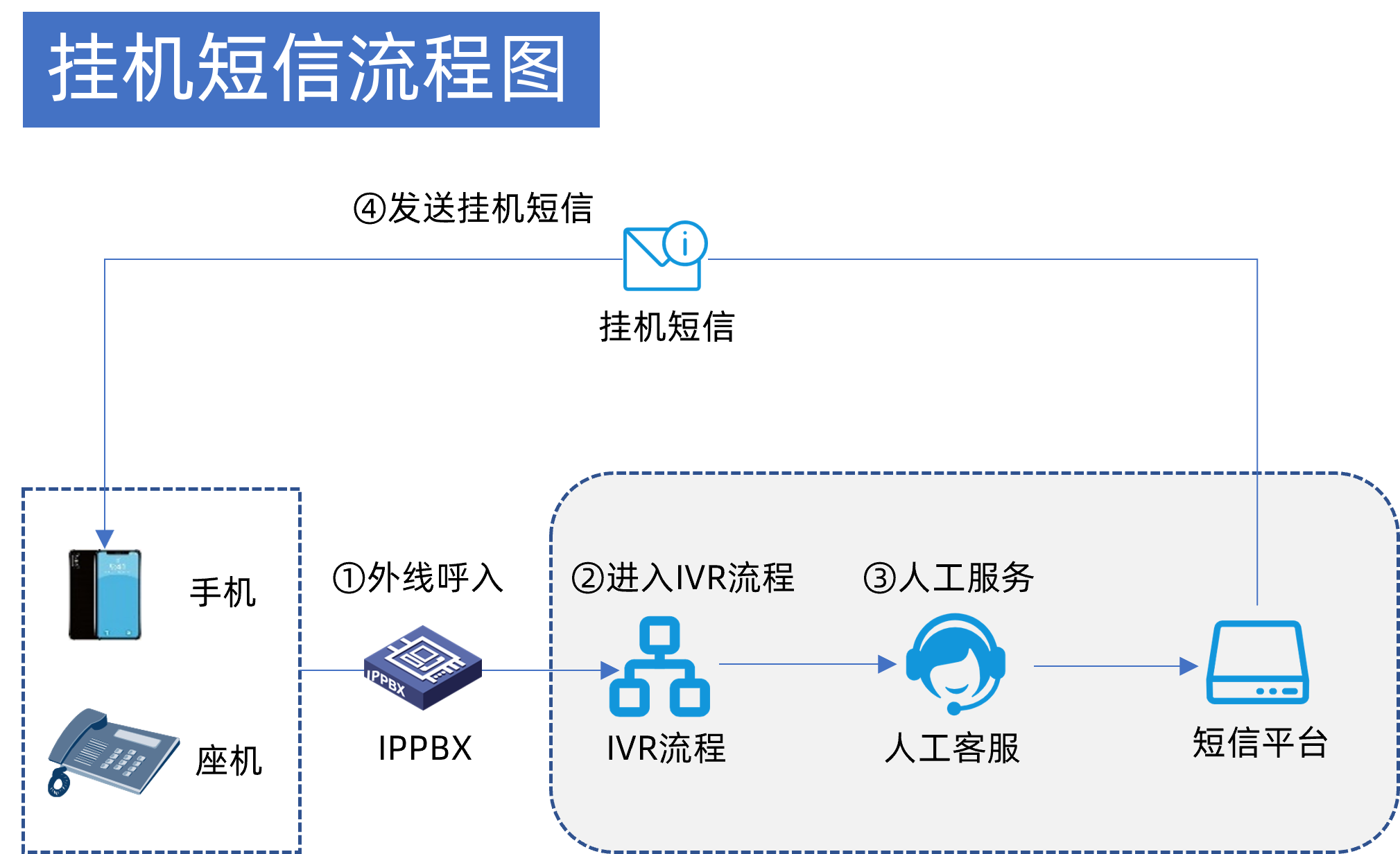 挂机短信是企业电话服务的延伸。呼入用户只凭借与企业的电话通信,难以对一些重要信息留下印象。通过挂机短信,企业能够将一些重点信息(如活动链接、信息通知等)以短信形式发送至呼入用户,能很好协助客户关系维护的业务,延展服务广度。