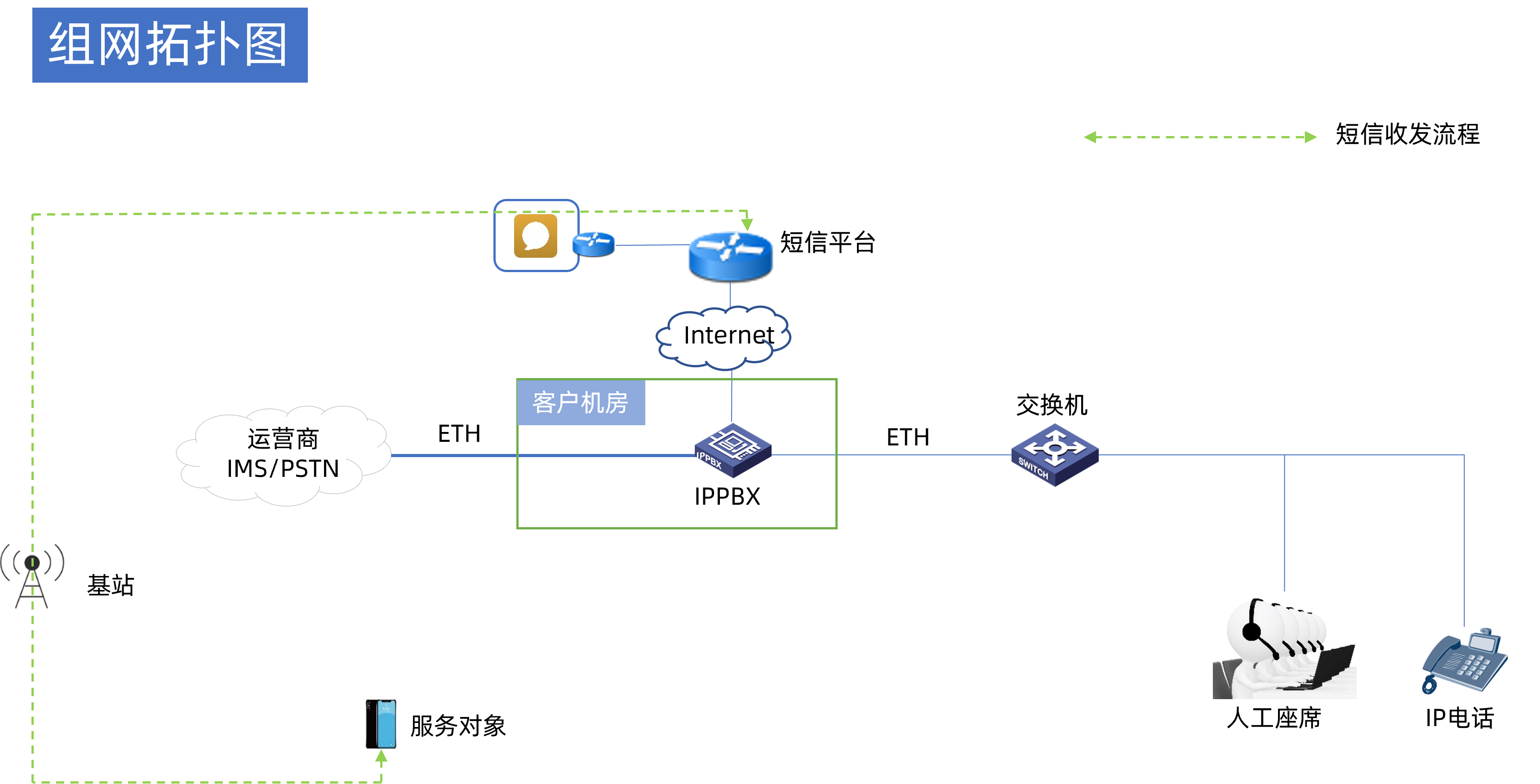 麻豆传媒与与运营商合作推出客服挂机短信系统,系统建设方案严格遵循行业相关标准和工程规范进行设计,系统组网架构参见下图: