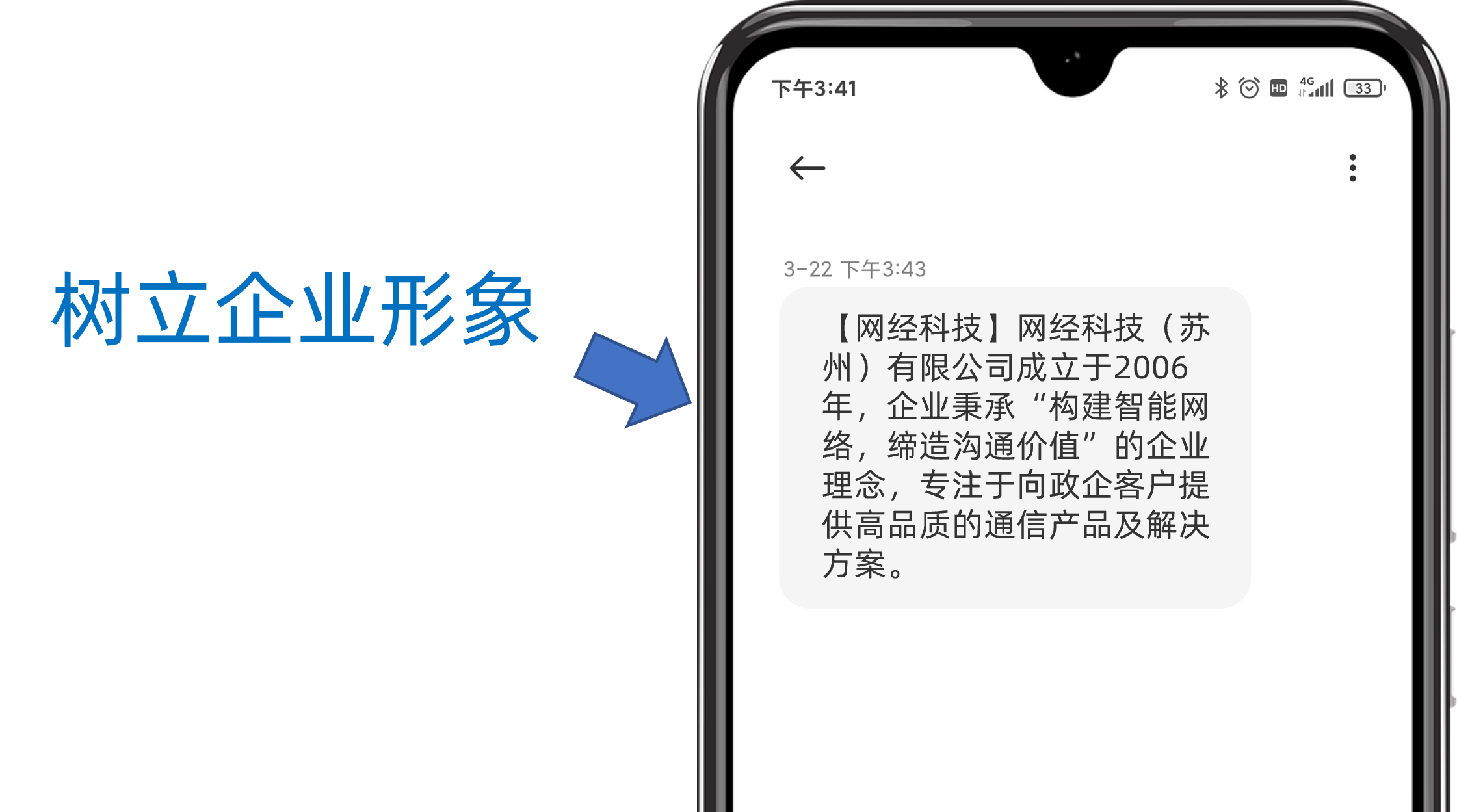 挂机短信可以将品牌简介、主营方向、产品介绍等讯息以短信形式发送至客户,树立企业专业形象。